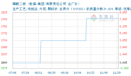 11月04日瓮福集团磷酸二铵为2900元