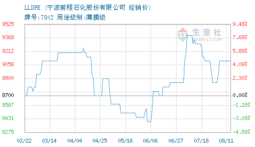 11月17日宁波前程石化股份有限公司关于LLDPE的报价为8250元/吨。LLDPE的出产地为陕西蒲城;LLDPE的属性:牌号:7042;用途级别:薄膜级。该报价有效期为3天。
