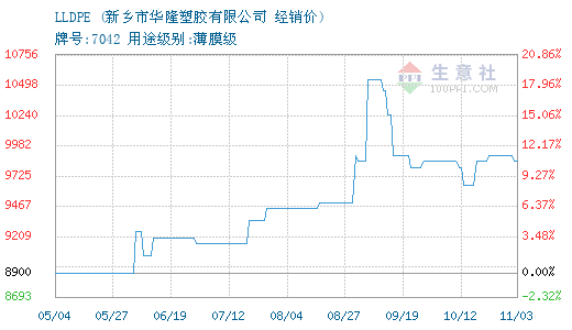 11月17日华隆塑胶LLDPE为8700元