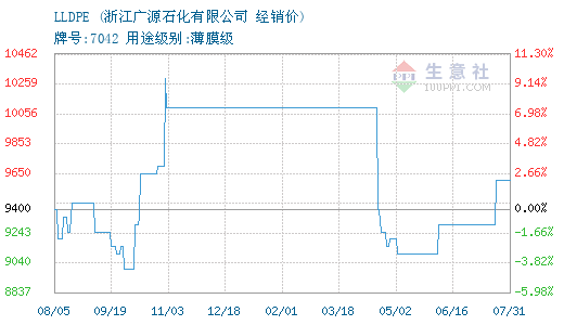 11月17日浙江广源石化有限公司关于LLDPE的报价为8850元/吨。LLDPE的出产地为浙江宁波;LLDPE的属性:牌号:7042;用途级别:薄膜级。该报价有效期为3天。