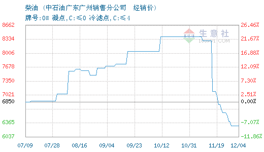 12月10日中石油广东广州销售分公司 关于柴油的报价为5600元/吨。柴油的出产地为广州;柴油的属性:牌号:0#;凝点,C:≤0;冷滤点,C:≤4。该报价有效期为1天。