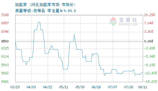 12月10日河北加氢苯市场关于加氢苯的报价为4350元/吨。加氢苯的属性:质量等级:优等品;苯含量≧%:99.9。该报价有效期为3天。