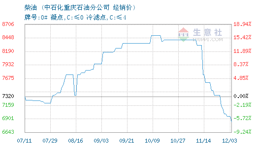 12月10日石化重庆柴油为5700元