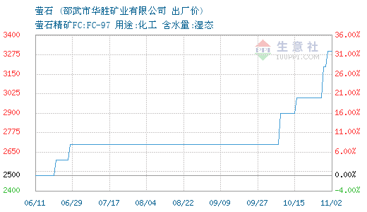 01月07日邵武市华胜矿业有限公司关于萤石的报价为1500元/吨。萤石的属性:萤石精矿FC:FC-97;用途:化工;含水量:湿态。该报价有效期为3天。